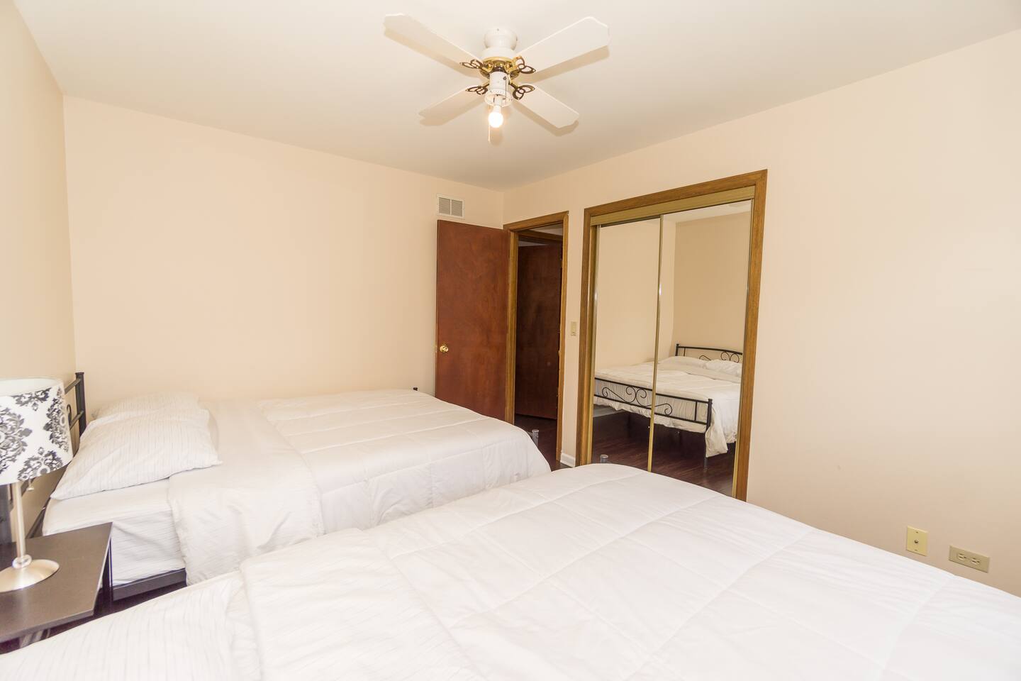 Parking is easy on the driveway. Many close supermarkets and shopping options are minutes away. Woodfield Mall and Oak Brook Center are two of the closest large malls.