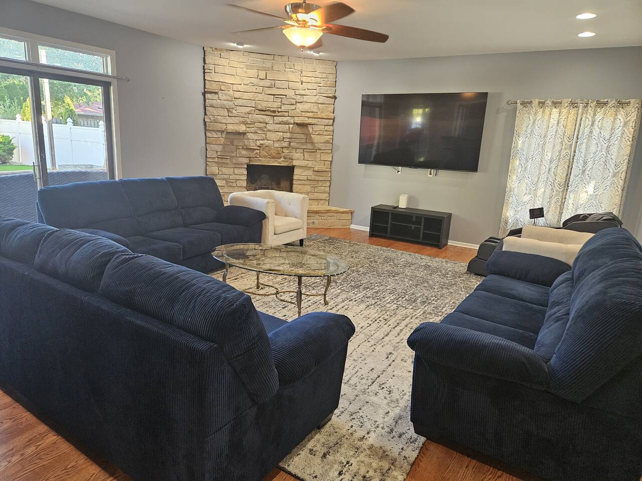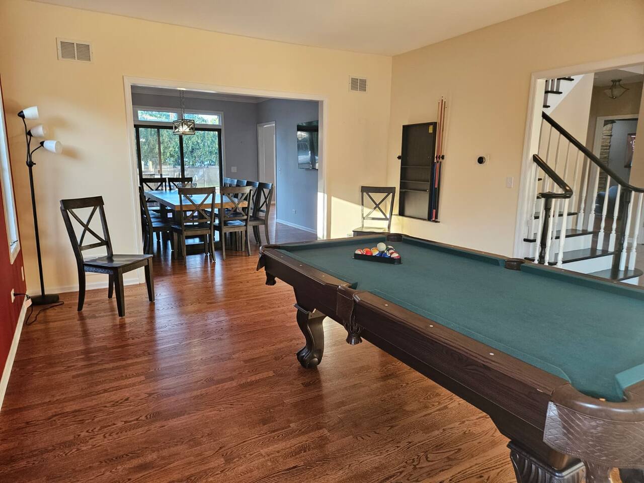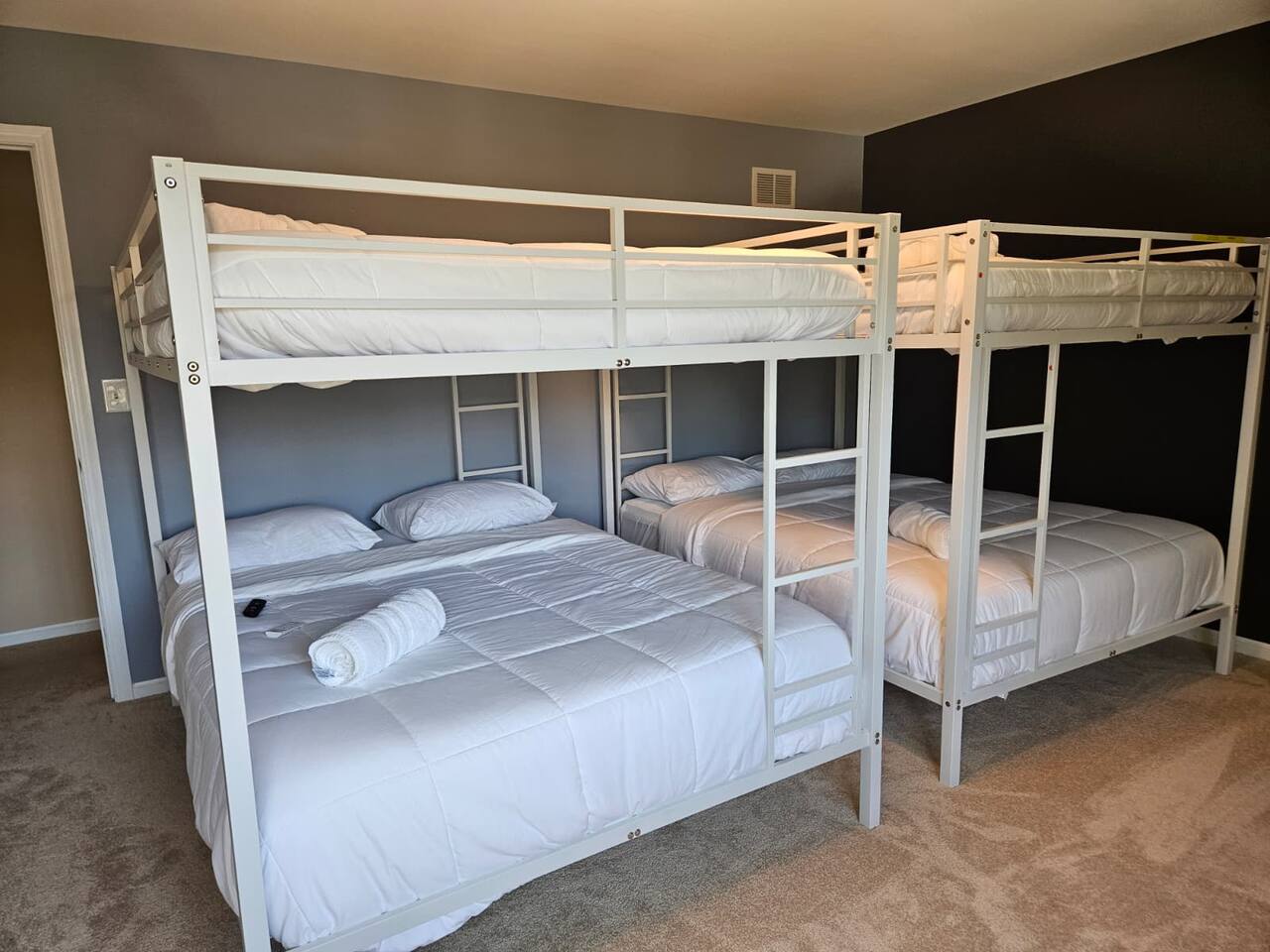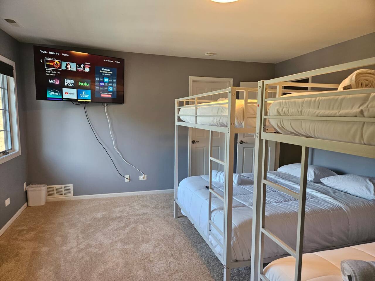 ๐ก The house features 4 bedrooms, 4.5 bathrooms, a giant family room, a huge kitchen, a spacious dining room, and a recreation-filled basement with a game room and TV lounge. โจ Outside, enjoy a huge backyard deck with an eating area and plenty of space to relax and have fun. ๐ Bedroom Details (all bedrooms are located on the 2nd floor): ๐๏ธ Master Bedroom 2 King-size beds (sleeps up to 4) 65-inch Smart TV Full attached bathroom with: Hot tub Separate standing shower Private toilet room ๐๏ธ Bedroom 2 2 Queen-size bunk beds (sleeps up to 8) Smart TV Attached bathroom ๐๏ธ Bedroom 3 1 King-size bed (sleeps 2) ๐๏ธ Bedroom 4 2 King-size beds (sleeps up to 4) Attached bathroom ๐ณ Main Level Highlights: Fully stocked huge kitchen with everything you need to cook and serve. Family room with a giant 85-inch Smart TV โ perfect for movie nights or sports. Spacious dining room with a large dining table (seats 12) and a 75-inch Smart TV. Recreation area with a full-size pool table. ๐ฎ Basement Highlights: Private office space with a table and chair โ ideal for remote work. Game room with a variety of games for all ages. Arcade game room for endless entertainment. TV lounge to relax and unwind.