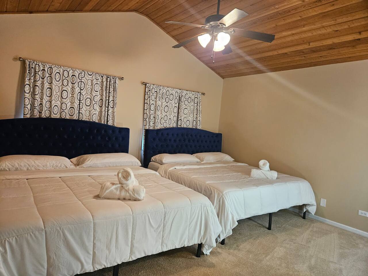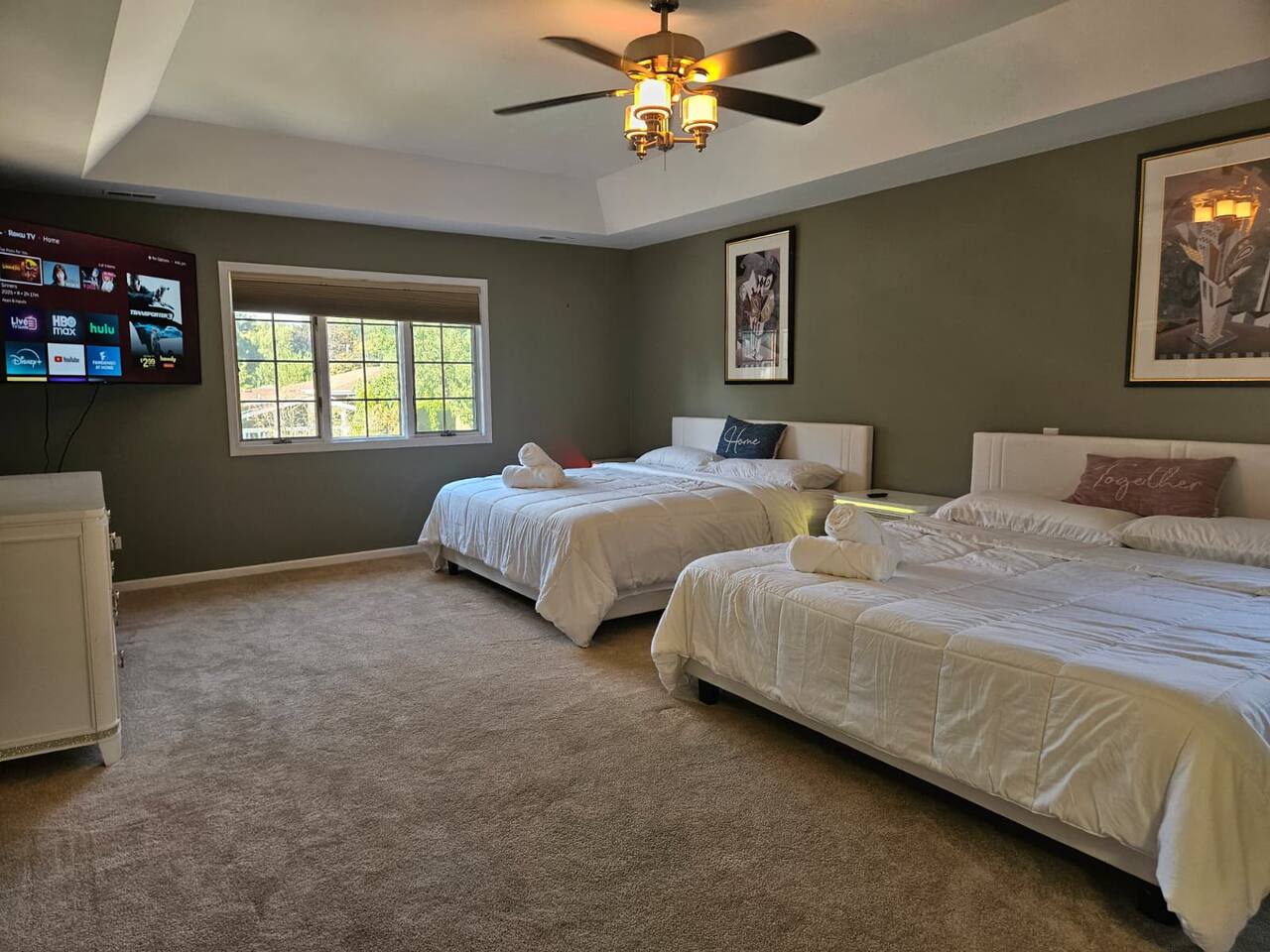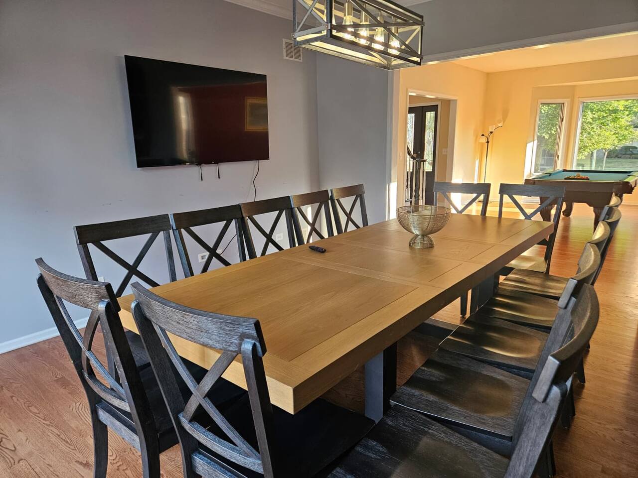 ๐ก The house features 4 bedrooms, 4.5 bathrooms, a giant family room, a huge kitchen, a spacious dining room, and a recreation-filled basement with a game room and TV lounge. โจ Outside, enjoy a huge backyard deck with an eating area and plenty of space to relax and have fun. ๐ Bedroom Details (all bedrooms are located on the 2nd floor): ๐๏ธ Master Bedroom 2 King-size beds (sleeps up to 4) 65-inch Smart TV Full attached bathroom with: Hot tub Separate standing shower Private toilet room ๐๏ธ Bedroom 2 2 Queen-size bunk beds (sleeps up to 8) Smart TV Attached bathroom ๐๏ธ Bedroom 3 1 King-size bed (sleeps 2) ๐๏ธ Bedroom 4 2 King-size beds (sleeps up to 4) Attached bathroom ๐ณ Main Level Highlights: Fully stocked huge kitchen with everything you need to cook and serve. Family room with a giant 85-inch Smart TV โ perfect for movie nights or sports. Spacious dining room with a large dining table (seats 12) and a 75-inch Smart TV. Recreation area with a full-size pool table. ๐ฎ Basement Highlights: Private office space with a table and chair โ ideal for remote work. Game room with a variety of games for all ages. Arcade game room for endless entertainment. TV lounge to relax and unwind.