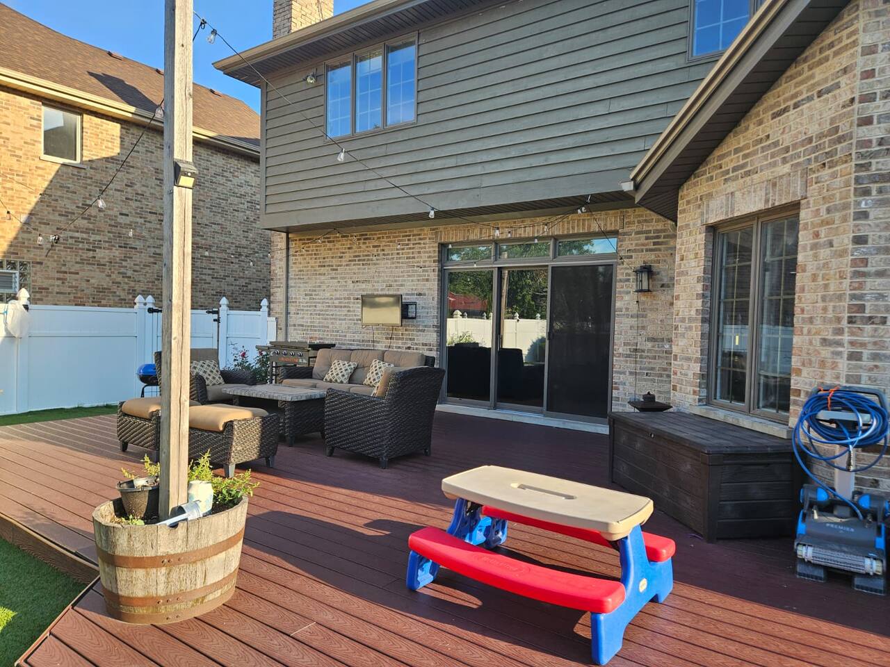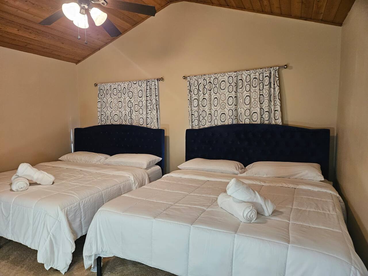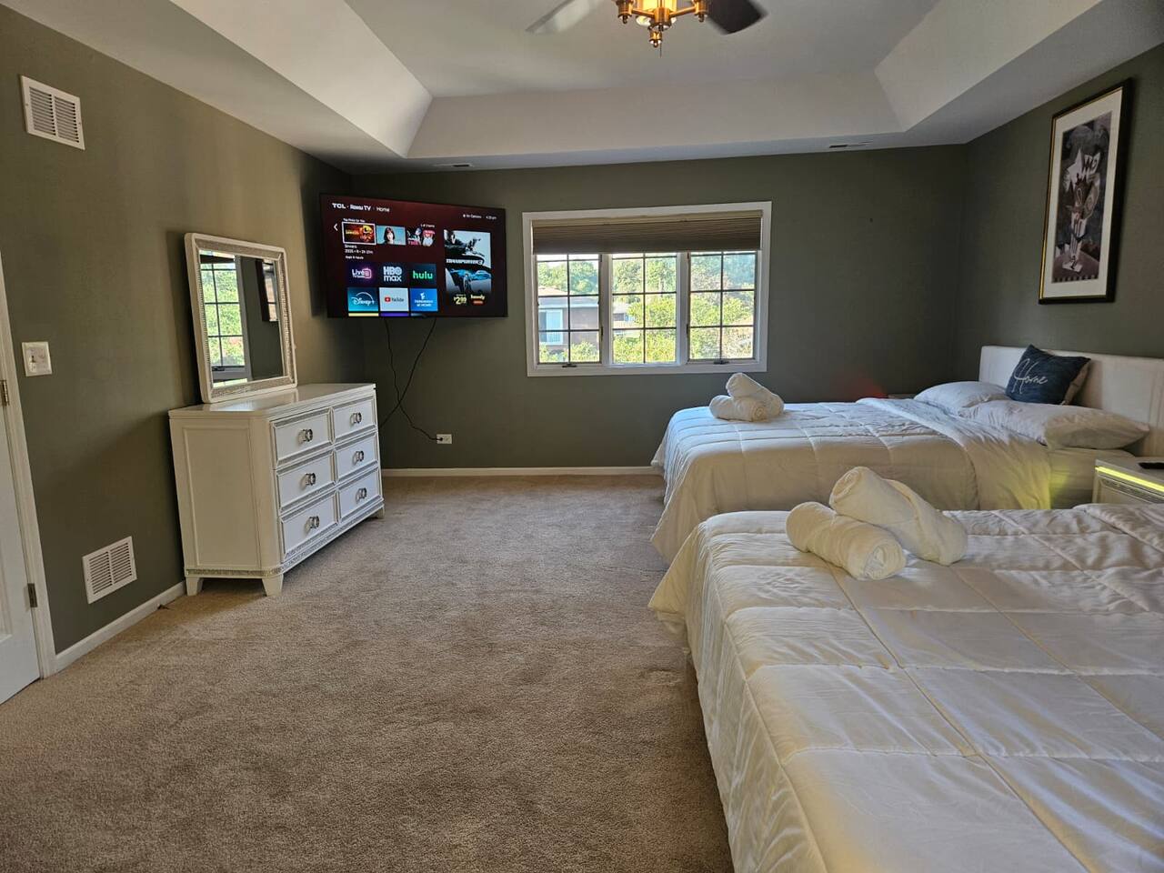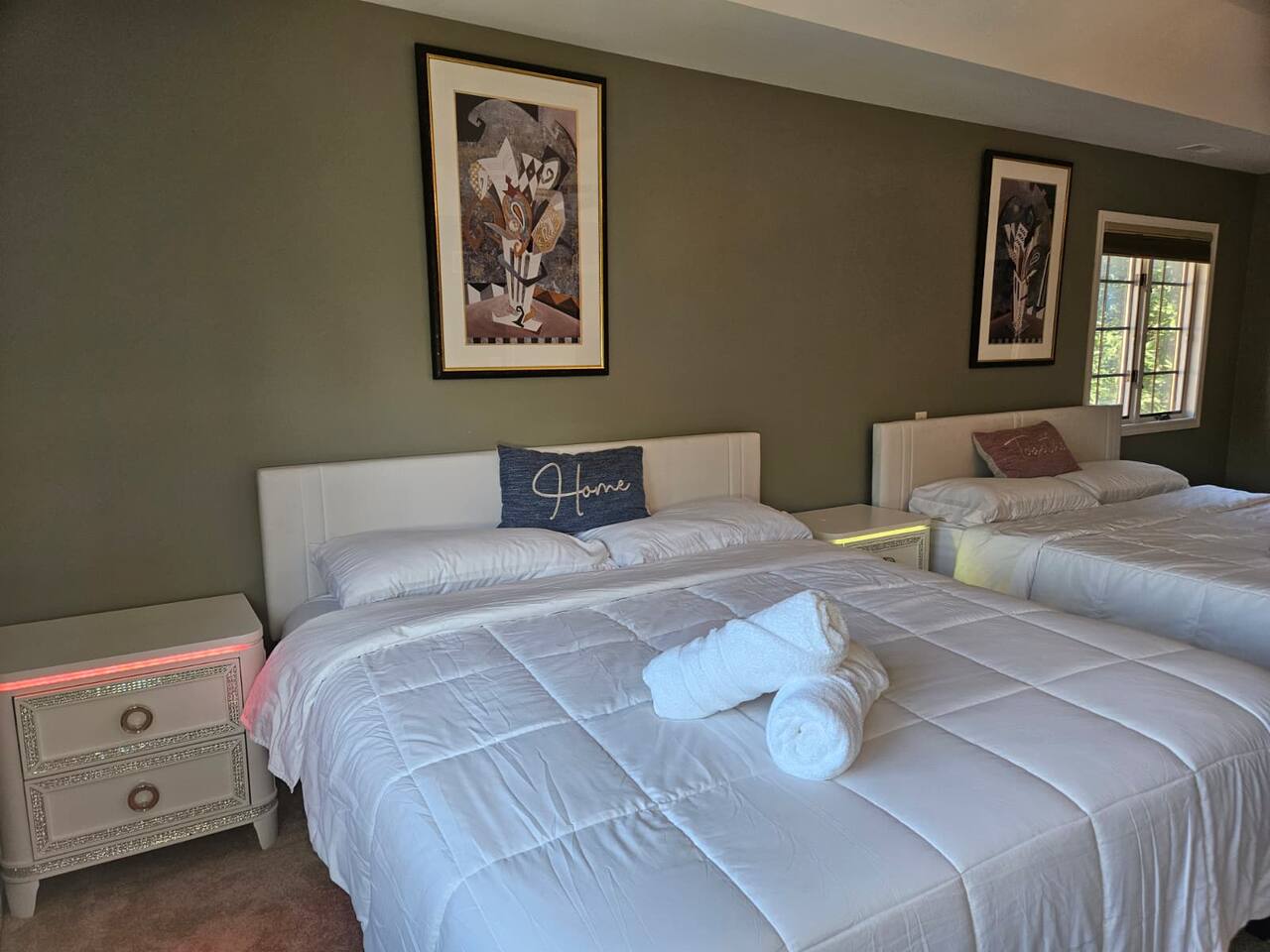 ๐ก The house features 4 bedrooms, 4.5 bathrooms, a giant family room, a huge kitchen, a spacious dining room, and a recreation-filled basement with a game room and TV lounge. โจ Outside, enjoy a huge backyard deck with an eating area and plenty of space to relax and have fun. ๐ Bedroom Details (all bedrooms are located on the 2nd floor): ๐๏ธ Master Bedroom 2 King-size beds (sleeps up to 4) 65-inch Smart TV Full attached bathroom with: Hot tub Separate standing shower Private toilet room ๐๏ธ Bedroom 2 2 Queen-size bunk beds (sleeps up to 8) Smart TV Attached bathroom ๐๏ธ Bedroom 3 1 King-size bed (sleeps 2) ๐๏ธ Bedroom 4 2 King-size beds (sleeps up to 4) Attached bathroom ๐ณ Main Level Highlights: Fully stocked huge kitchen with everything you need to cook and serve. Family room with a giant 85-inch Smart TV โ perfect for movie nights or sports. Spacious dining room with a large dining table (seats 12) and a 75-inch Smart TV. Recreation area with a full-size pool table. ๐ฎ Basement Highlights: Private office space with a table and chair โ ideal for remote work. Game room with a variety of games for all ages. Arcade game room for endless entertainment. TV lounge to relax and unwind.